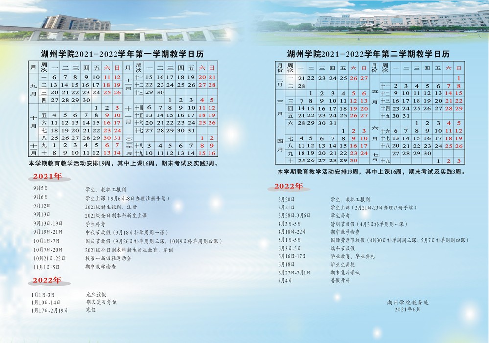 湖州学院2021-2022学年教学日历