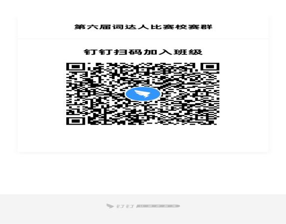 2. 未尽事宜另行通知。报名参赛的同学请务必扫码加入“第六届词达人比赛校赛群”钉钉群。